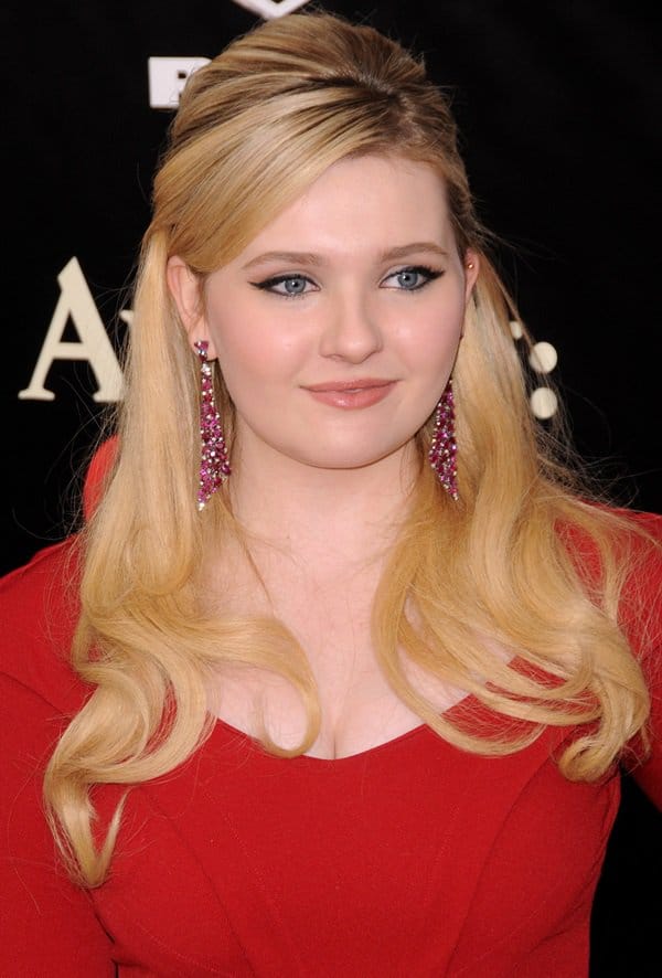For the Los Angeles premiere, 17-year-old Abigail hit the red carpet in a silver-and-nude-panel long-sleeve dress by Norma Kamali.
