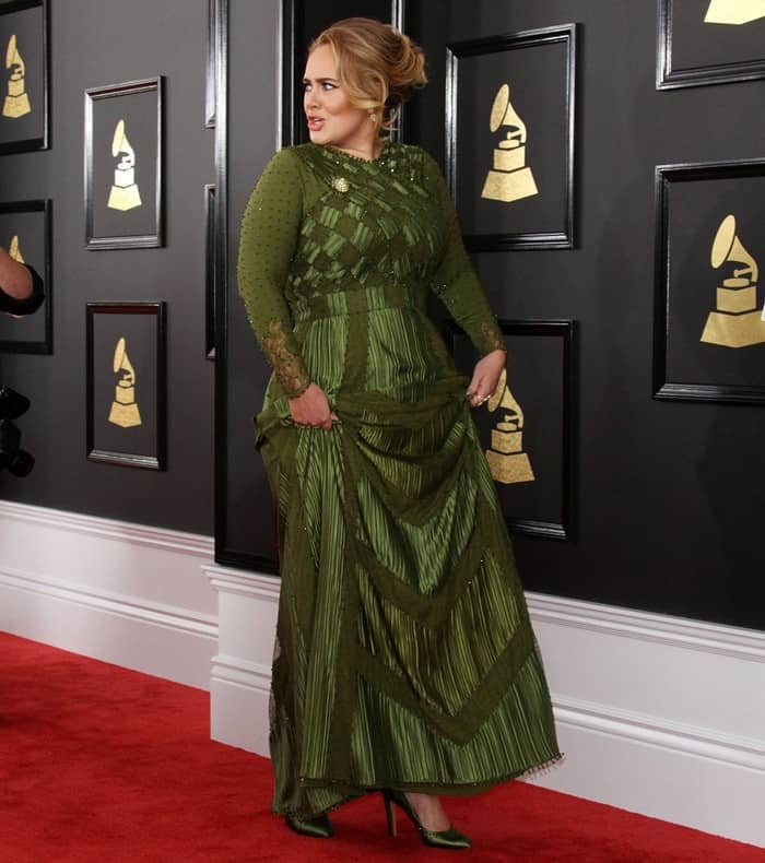 In February 2017, Adele rocked the red carpet at the 2017 Grammys held at the Staples Center in Los Angeles.