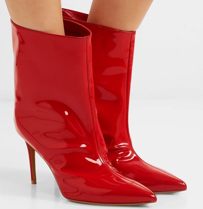 They’ve been made in Italy from bold red patent leather and have a pin-thin 90mm heel.
