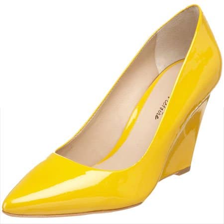 These have the painting-quality print, though these are of feathers and are more like a drawing. Wear them with these less expensive yellow wedges to get Alexis Bledel’s look for less: