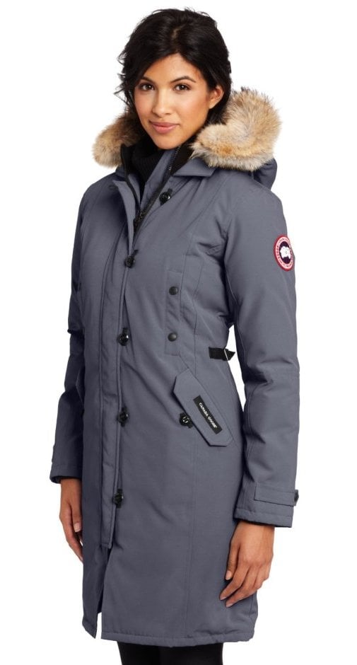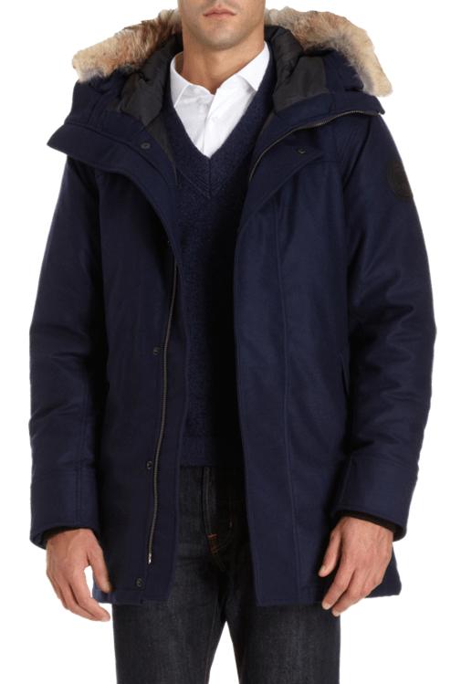 The Canada Goose Como parka features a zip front to keep the cold wind out, and its hood is trimmed with coyote fur.
