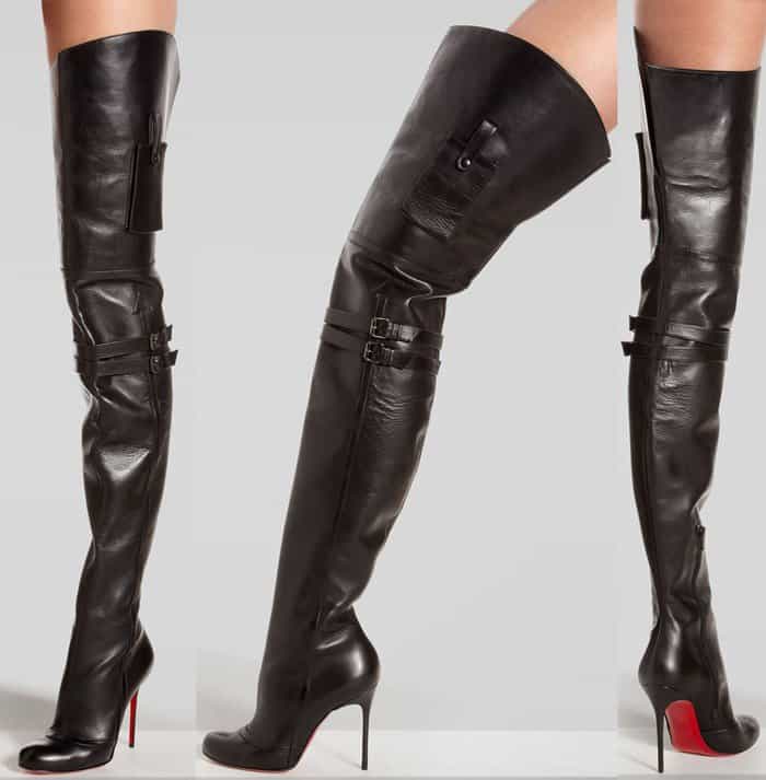 Rihanna wore a similar ensemble — composed of a black Raf Simons “Sea of Desire” top paired with white Christian Louboutin “Seann Girl” thigh-high boots — as part of her 2014 Diamonds Tour.