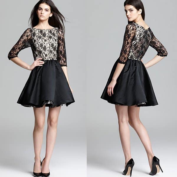 Switching up the boots for a classic pair of black pointed-toe heels would have done the dress some justice. The dress also has a layer of lace peeking out from underneath the sea of satin, which makes the classic silhouette move up a notch in the list of modern dresses.