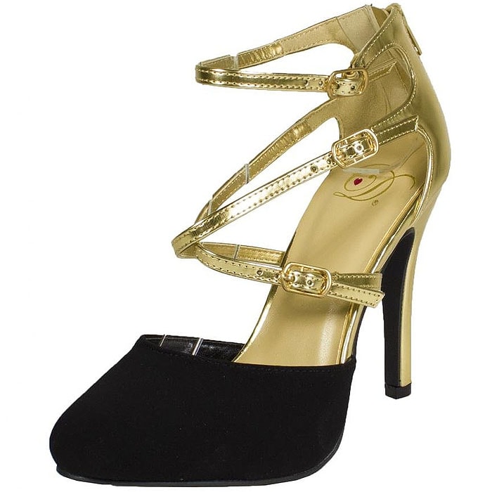 Being 6 feet tall didn’t hinder Danyelle Wolf from wearing gorgeous black-and-gold heels with three metallic straps going around the ankles.