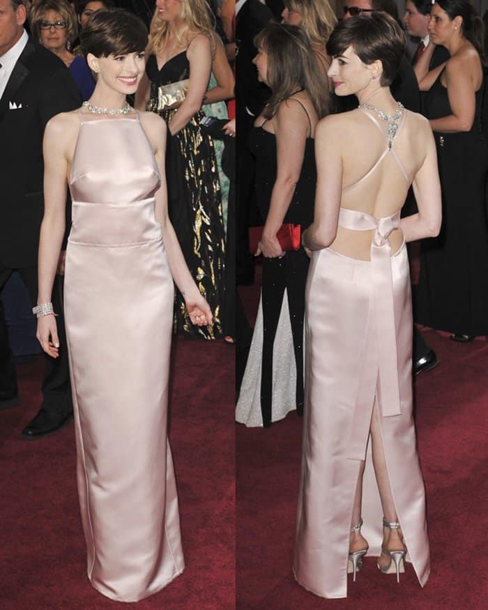How do you like her red strapless Dior dress and backdrop necklace worth $2 million by Neil Lane? It features 100 carats of diamonds.
