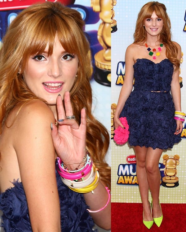 Bella Thorne attended the 2013 Radio Disney Music Awards wearing a stylish ensemble that included a Keepsake top and skirt paired with Christian Dior shoes (Credit: Nikki Nelson / WENN)