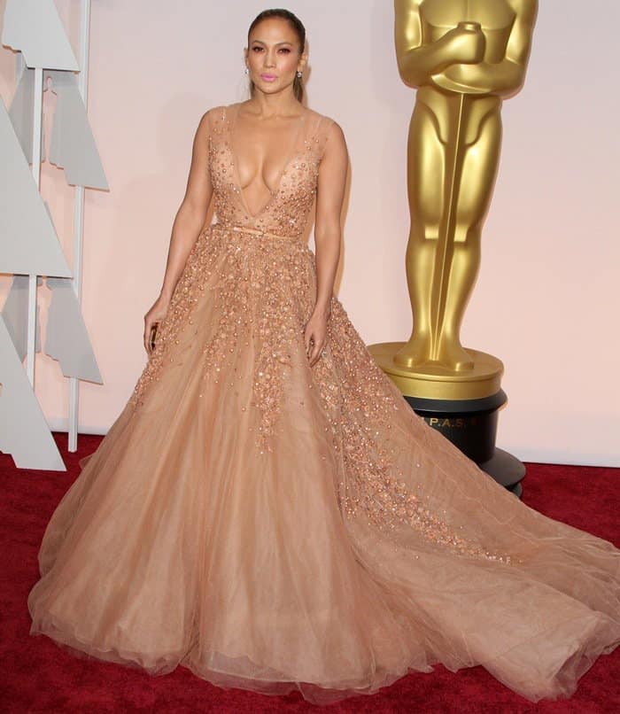 Jennifer Lopez flaunting her sexy cleavage in Elie Saab