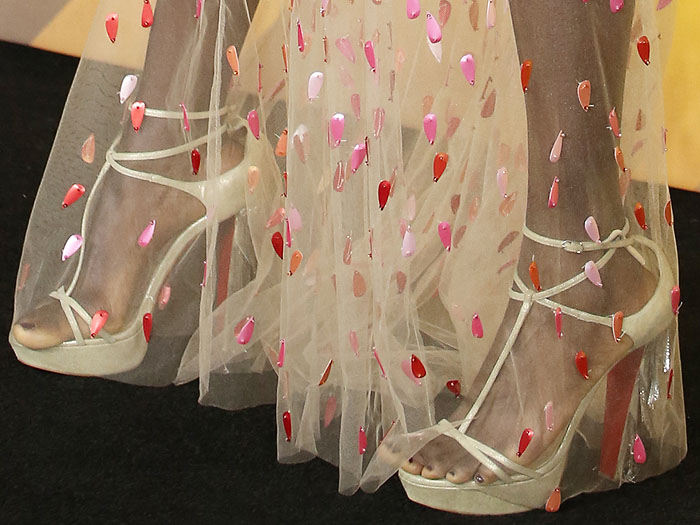 The 39-year-old actress complemented her couture look with Ara Vartanian jewelry and Christian Louboutin sandals.
