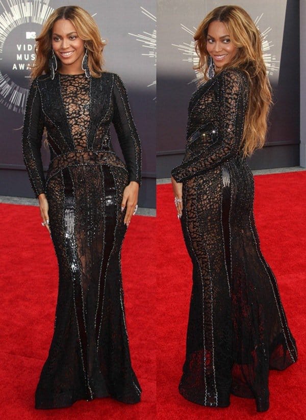The 32-year-old superstar rocked two beautiful gowns on the red carpet, one of which was a Nicolas Jebran couture creation. Featuring a figure-hugging silhouette with sexy peekaboo netting, Beyonce was totally showing off her bootylicious body.