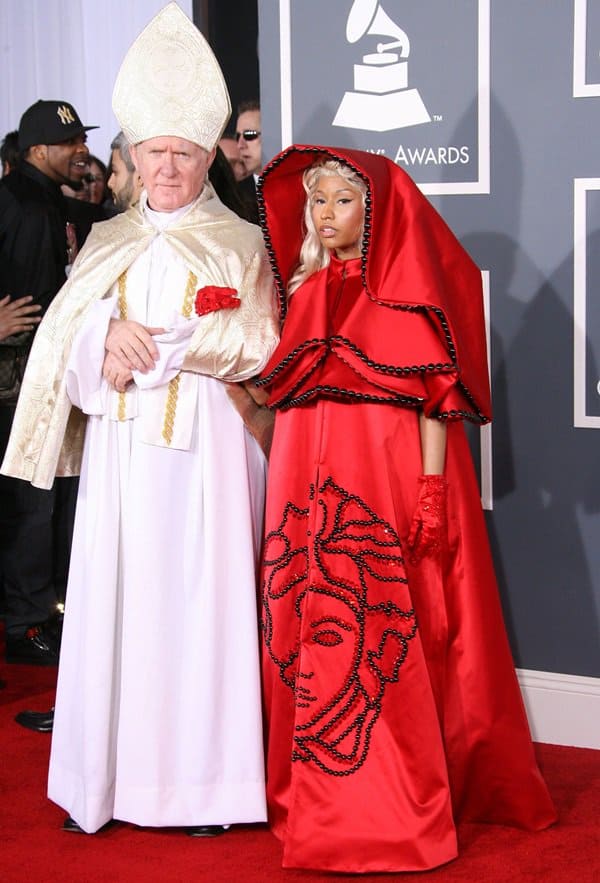 1. Nicki Minaj in Sacrilegious Red Versace Cape
