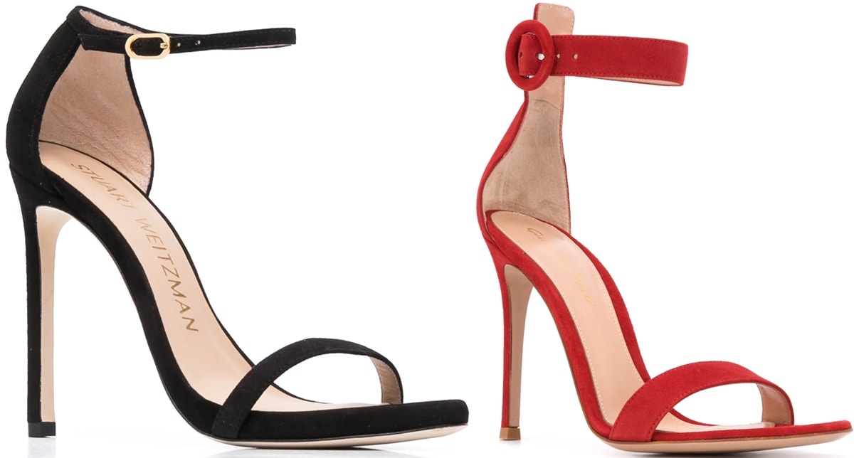 The Stuart Weitzman ‘Nudist’ and Gianvito Rossi ‘Portofino’ are among the most famous barely-there sandals, celebrated for their elegant and minimalist designs