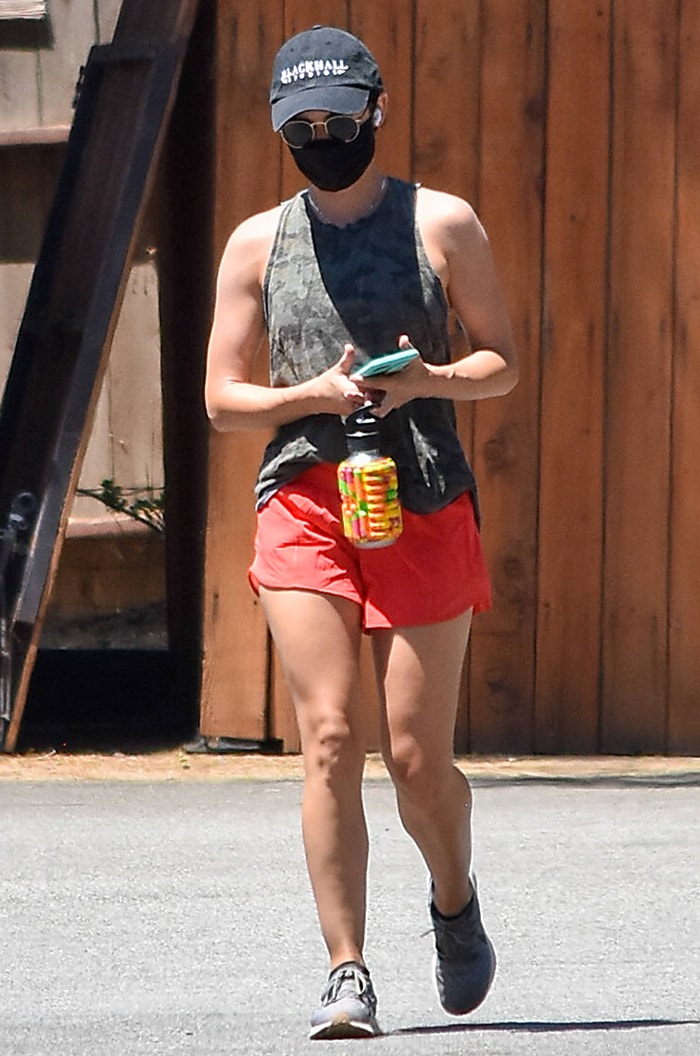 Showcasing the latest in face mask fashion, Lucy Hale once again flaunted her perfectly toned body as she stepped out for a hike in Los Angeles on Saturday.