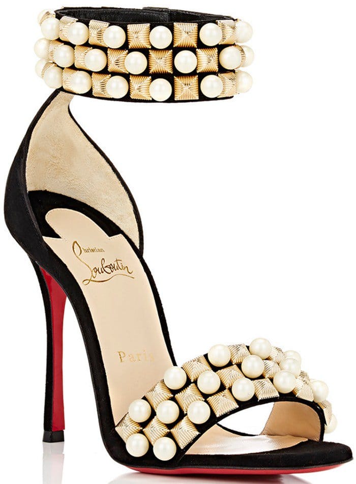 The Christian Louboutin “Tudor Bal” pearl-studded sandals are available at Neiman Marcus and Barneys New York. They are are embellished with goldtone textured pyramid studs and imitation pearls. No wonder Blake Lively and Janelle Monáe love them!