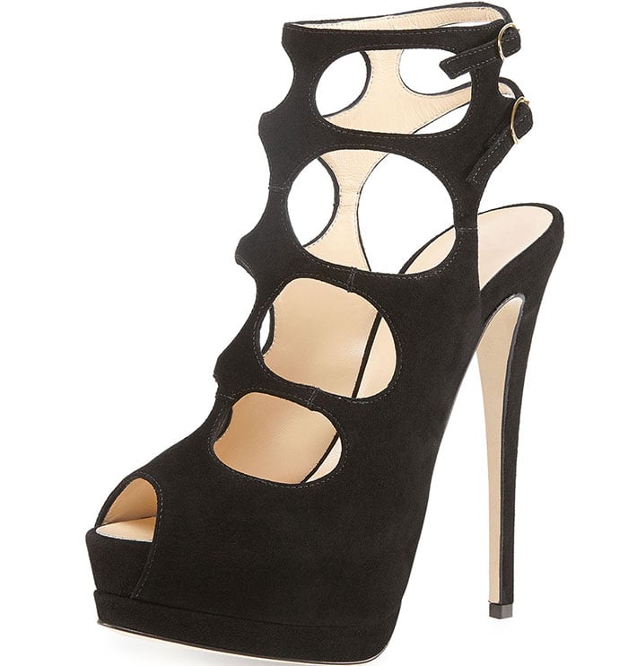 Giuseppe Zanotti Suede Cutout Platform Sandals, $1,115 at Zappos