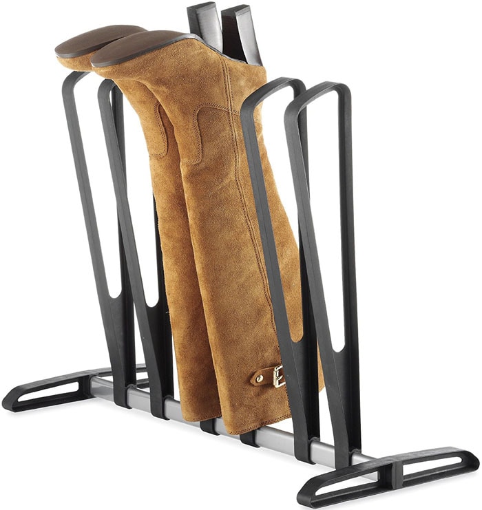 Some racks have single poles, while others are more considerate in boot shaping. We would also go for the ones that work on the boot width. Just ensure they don’t stretch out the leather beyond what is necessary. These racks come in sets that organize three to four pairs each.