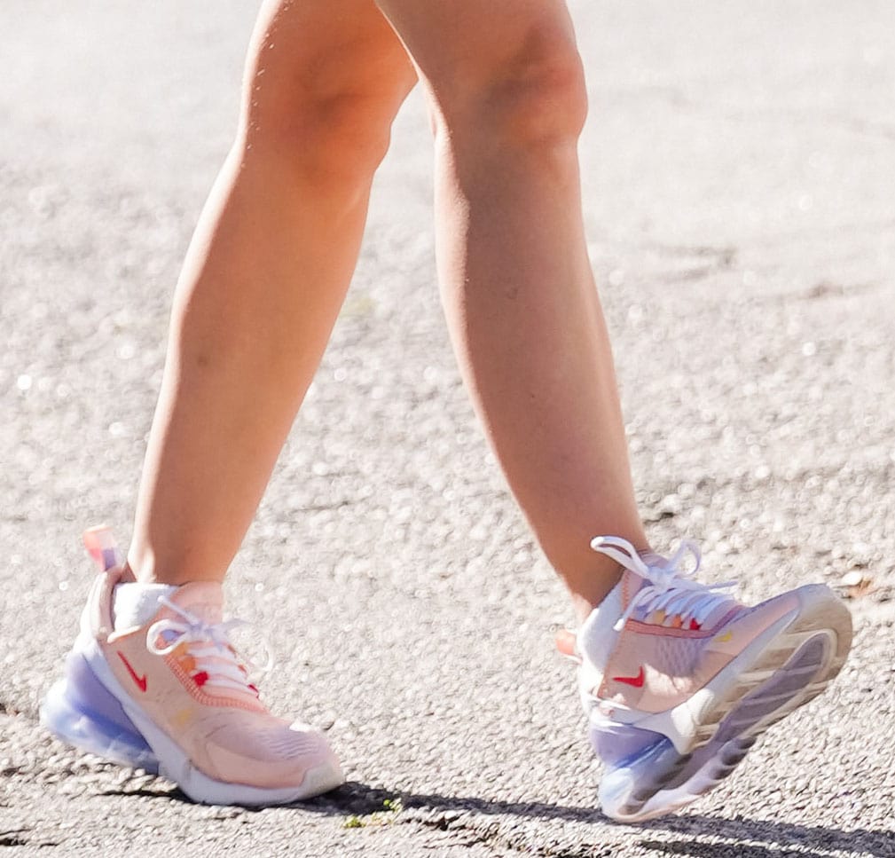 She chose the Air Max 270 in pastel colorway, released in spring last year. It features a washed coral base with hints of red, orange, yellow, and purple colors.