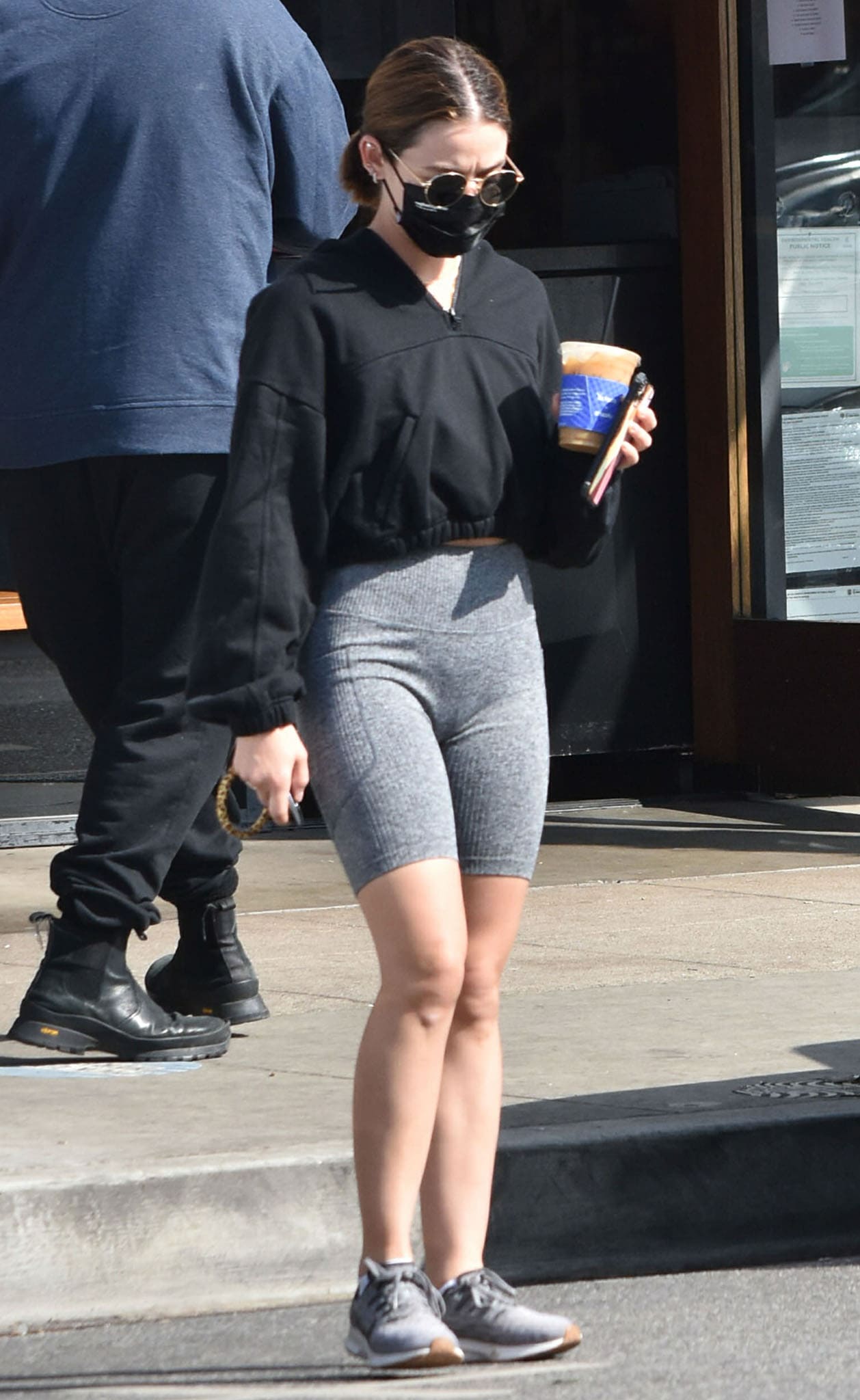 Lucy Hale leaving a workout session in Los Angeles on February 9, 2021 (Credit: Instar / WENN)