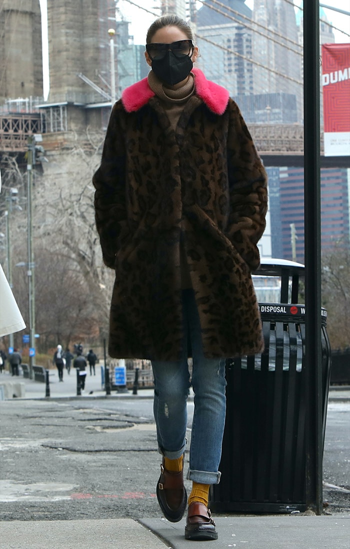 On the other hand, his fashion influencer wife, Olivia Palermo, chose a leopard-printed coat with a hot pink fur collar from Cara Mila. It’s the same coat she wore while on a stroll with her husband two weeks ago.