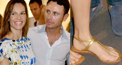Hilary Swank elongates her legs in chic black heels, showcasing her elegant feet and polished pedicure on the red carpe (Credit: S_Bukley / Shutterstock)
