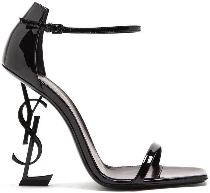 These black Opyum heels are crafted in Italy from patent leather with a slim strap across the front and a matching buckle-fastening ankle strap.