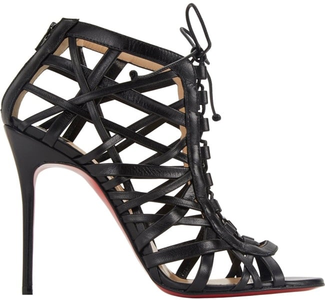 She showed off her feet in these strappy lace-up heels from Christian Louboutin on the actress — the “Laurence Anyway” caged ankle booties: