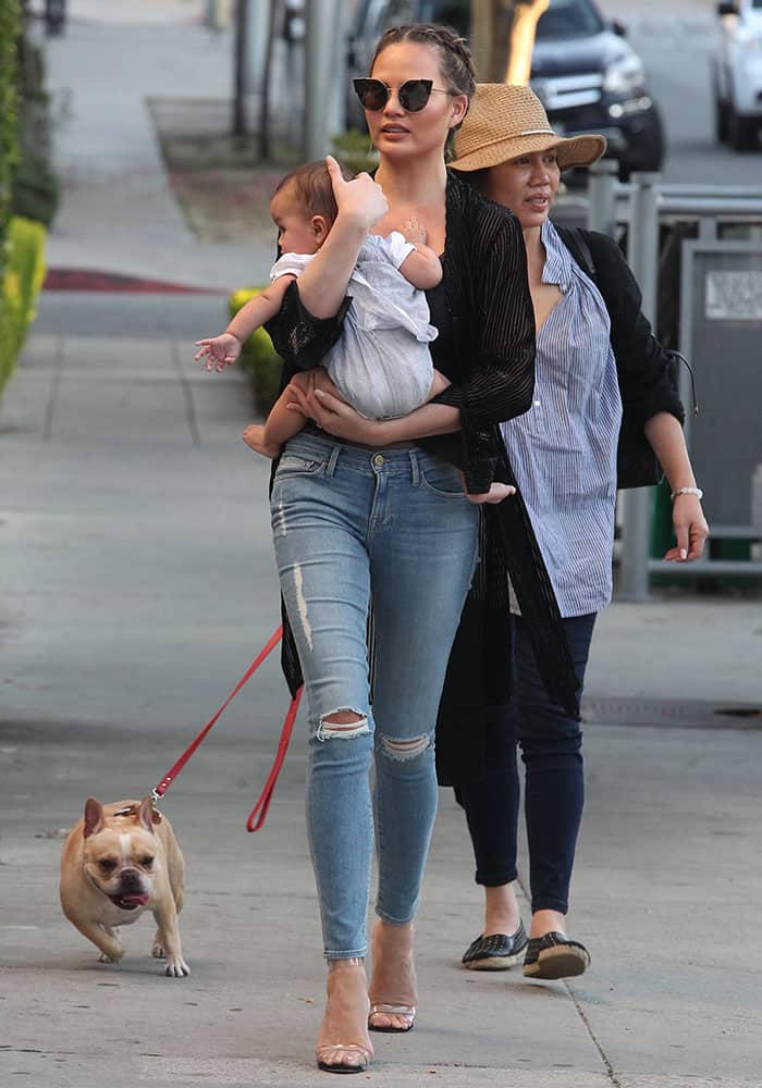 Chrissy Teigen didn’t sacrifice her style one bit as she stepped out for some shopping with her daughter, Luna, at Bel Bambini in Beverly Hills on Wednesday.