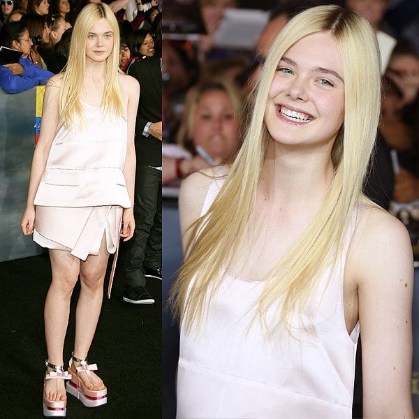 Elle Fanning posing for the cameras at the premiere of The Twilight Saga: Breaking Dawn — Part 2 at Nokia Theatre L.A. Live in Los Angeles, California on November 12, 2012 (Credit: Apega / WENN/ Ian Wilson/ Adriana M. Barraza / FayesVision)