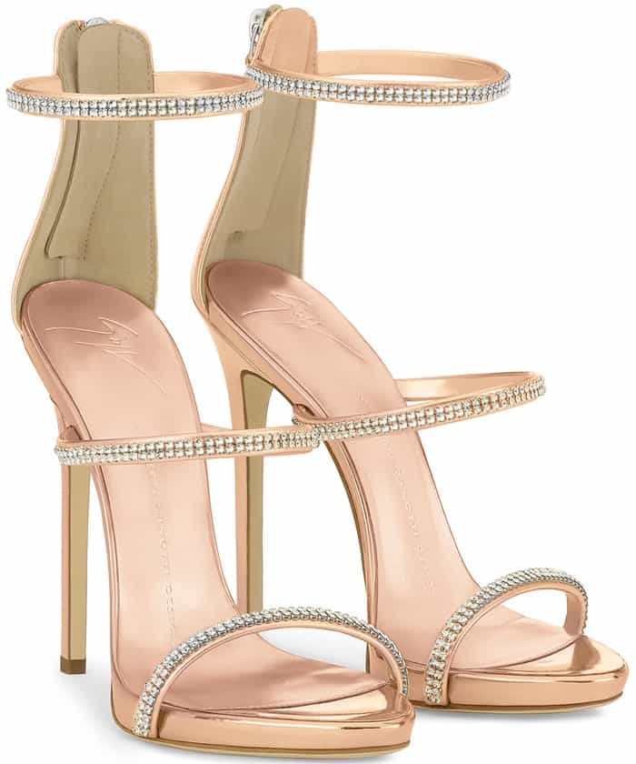 Giuseppe Zanotti 'Harmony Sparkle' Triple-Strap Sandals in Rose GoldGiuseppe Zanotti ‘Harmony Sparkle’ Triple-Strap Sandals in Rose Gold, $950