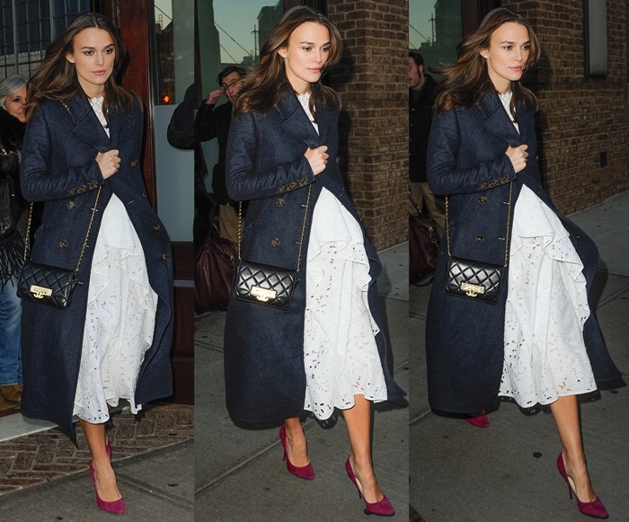 In November 2014, a pregnant Keira Knightley was spotted leaving her hotel in New York City to make a guest appearance on ‘Late Night with Seth Meyers’ in yet another white dress.