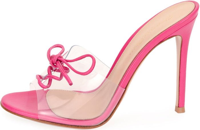 The actress was ahead of the season by wearing the upcoming footwear rage: PVC mules. Dakota picked out the pink Gianvito Rossi “Plexi Closet” pair to complete her ensemble.