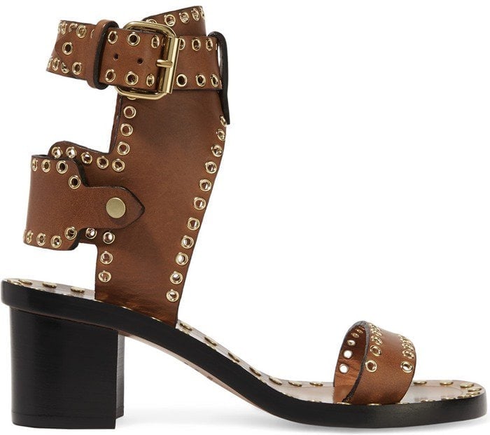 The then 35-year-old actress wore her casual combination with a Saint Laurent bag and Isabel Marant’s “Jaeryn” eyelet mid-heel gladiator leather sandals.