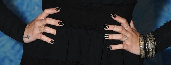 Demi Lovato shows off her rings, bracelets and black nails at the premiere of “Frozen”