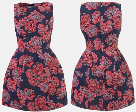 See? Doesn’t she look effortlessly fantastic?! Thank goodness she’s back to her brunette locks; the blonde hair was painful, not to mention a little tacky. Demi’s printed dress is actually from Topshop. It’s called the “Champion” floral jacquard dress, retailing at an accessible $160.