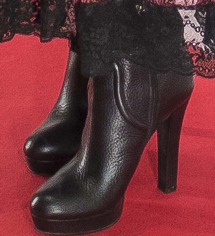 Instead of going for the designer’s lovely lace-up heels, however, the actress opted for a more masculine pair of platform ankle boots.