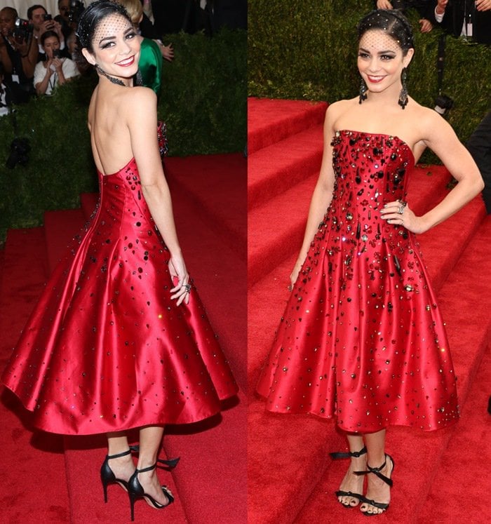 Like Lily Collins, Vanessa Hudgens donned a black birdcage veil as she hit the red carpet at the 2015 Met Gala at the Metropolitan Museum of Art in New York City.