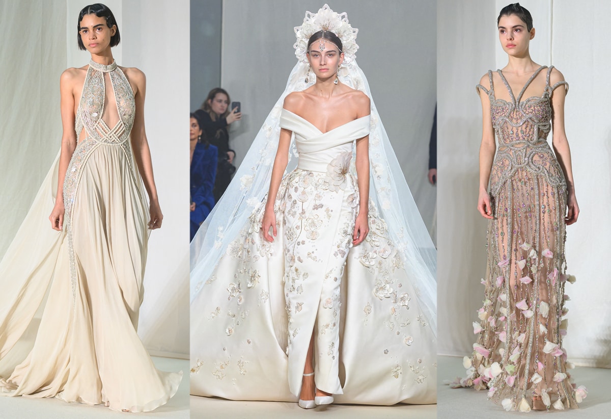 Elie Saab is known for its whimsical bridalwear and hyper-feminine haute couture dresses. The brand is synonymous with its use of lace, Swarovski crystals, detailed embroidery, and gemstones.