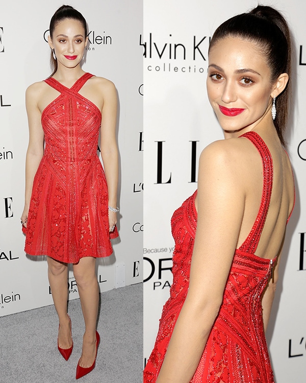10. Emmy Rossum in Red Elie Saab Embroidered Dress