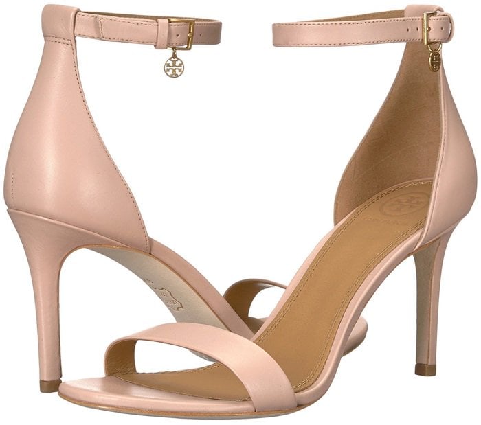 A double-T logo charm adds a touch of elegance to the buckled ankle strap of these versatile, barely-there sandals, available in a variety of stunning colors to suit any wardrobe: