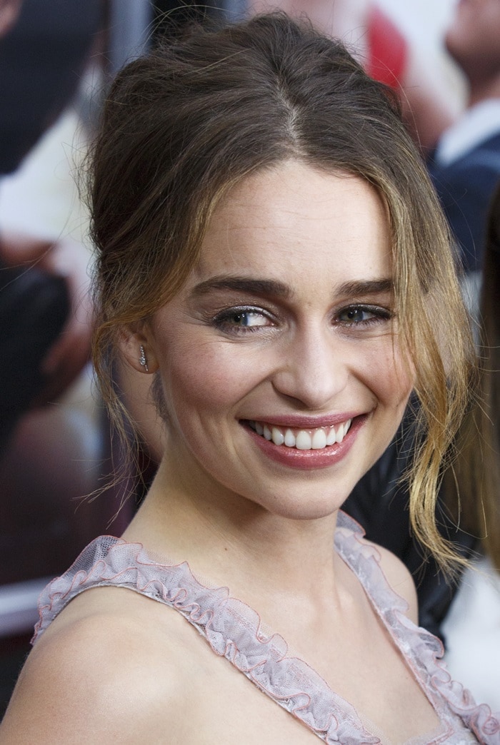 Dom Hemingway actress Emilia Clarke had a busy month in May 2016! After spending time in New York City promoting her new movie with The Hunger Games actor Sam Claflin, the then-29-year-old actress — best known for portraying Khaleesi in HBO’s Game of Thrones — made a stunning appearance on the red carpet at the premiere of Me Before You in a pale lavender, tiered lace Chloé dress.