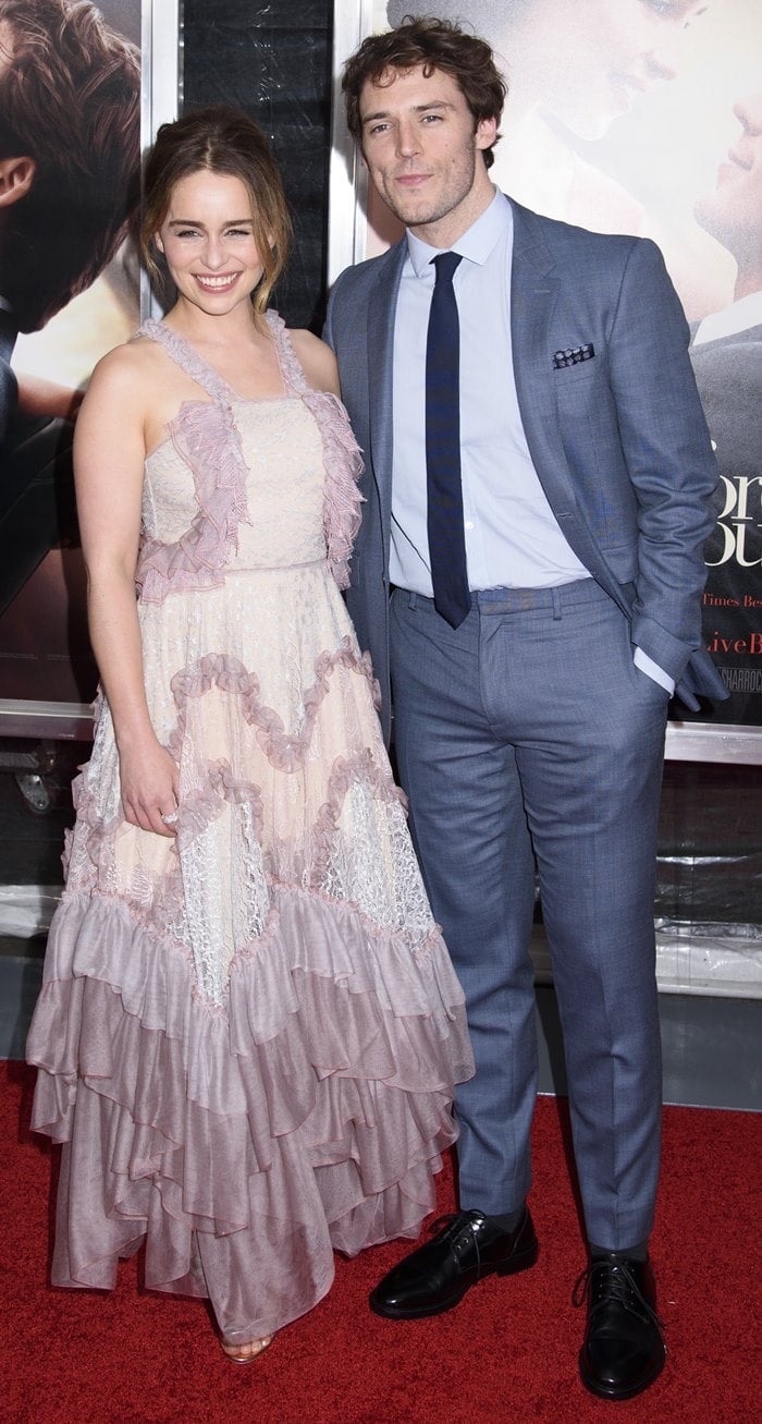 Emilia Clarke poses with her costar, Sam Claflin, on the red carpet of the "Me Before You" premiereEmilia Clarke poses with her co-star, Sam Claflin, on the red carpet of the “Me Before You” premiere (Credit: Andres Otero / WENN)