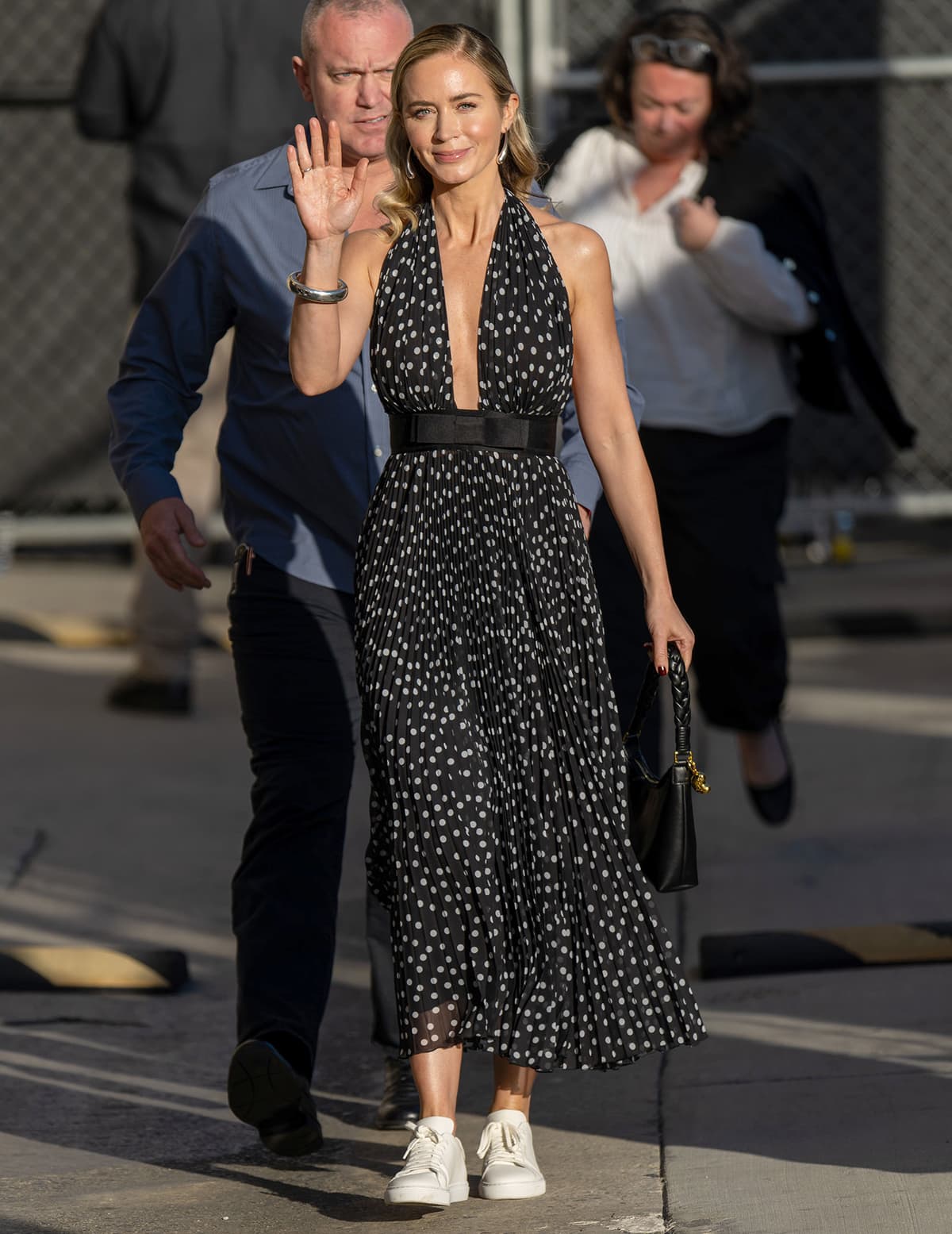 On her way to the studio, Blunt was seen sporting a polka-dot dress with white sneakers, which struck me as vintage.