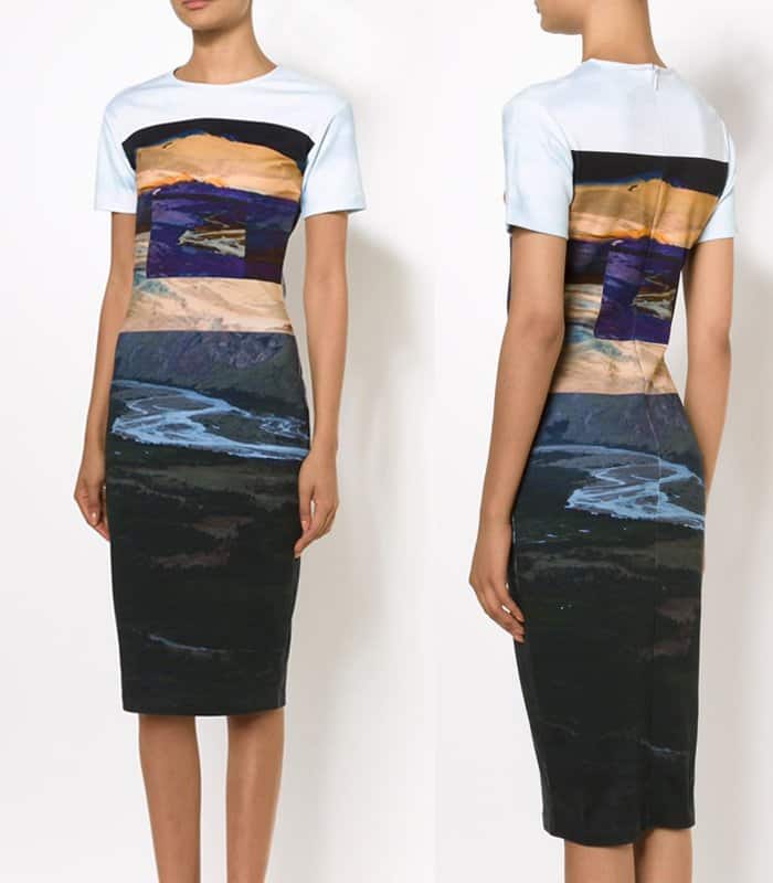 The Scream Queens actress recently wore the Peter Pilotto Resort 2016 “Kara” dress with an off-shoulder bodice and a pencil skirt silhouette.