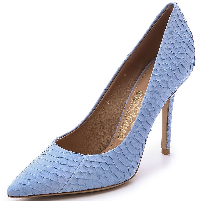 Salvatore Ferragamo “Susi” Snakeskin Pumps in Fleur Bleue, $795