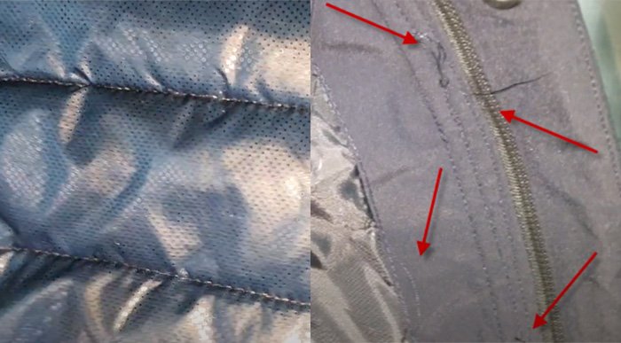 As a result, the lines of the stitches are not perfectly aligned. A genuine branded jacket will have neater stitches and more per square inch.