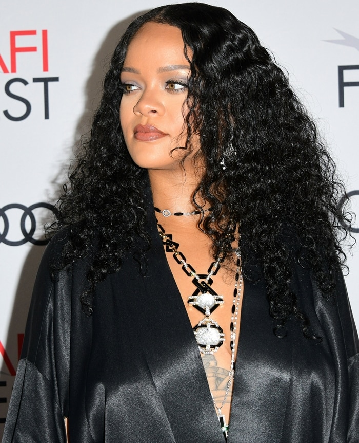Rihanna used to have two music notes tattooed on the inside of her right foot, but replaced them with a large Egyptian falcon in 2002. She showed it off when joining Natalie Portman and Zendaya the Queen & Slim premiere on Thursday night at the TCL Chinese Theatre in Hollywood, California.