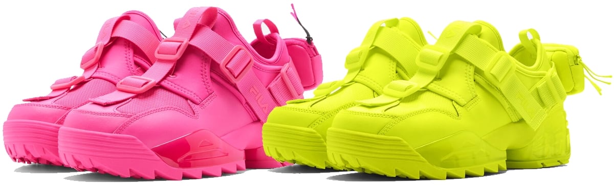 The Unit V2 sneakers are a utility-inspired silhouette designed to be as electric as your personality. This bold shoe features a detachable pouch with adjustable slider straps and Velcro closures. You can choose between fuchsia pink and neon yellow in the Unit V2 shoes.