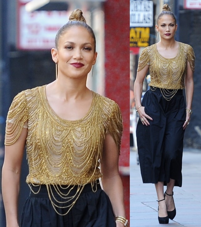 Back in October 2014, Jennifer Lopez brought a touch of Roaring Twenties glamour to the American Idol Hollywood Week auditions at Los Angeles’ historic Orpheum Theatre, dazzling in a gold-fringed Naeem Khan top that gave a modern nod to flapper-girl style.
