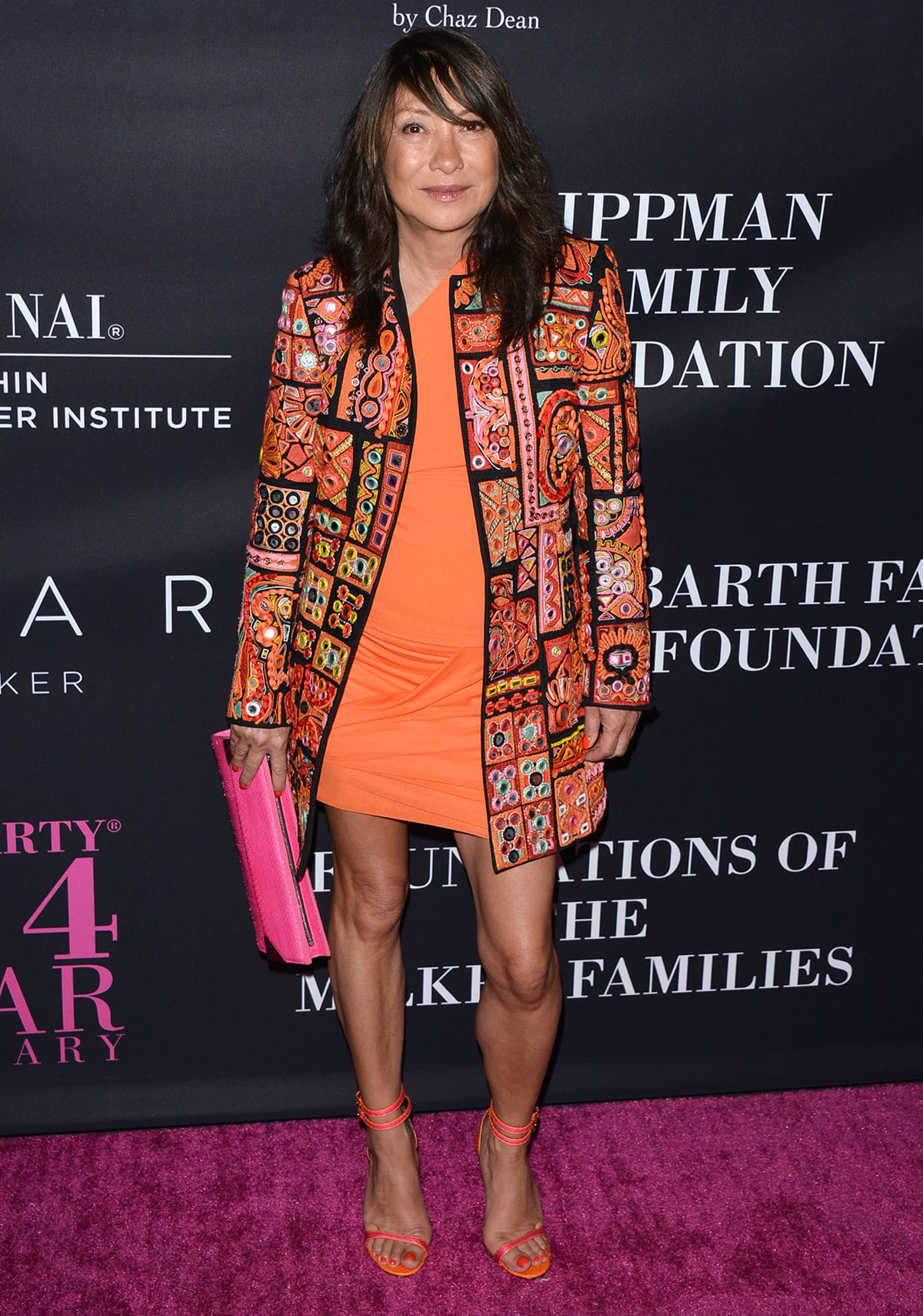 - 💃 Michelle Pfeiffer’s Sexy Feet — featuring a Barbara Bui printed metallic shift dress at a Pink Party.