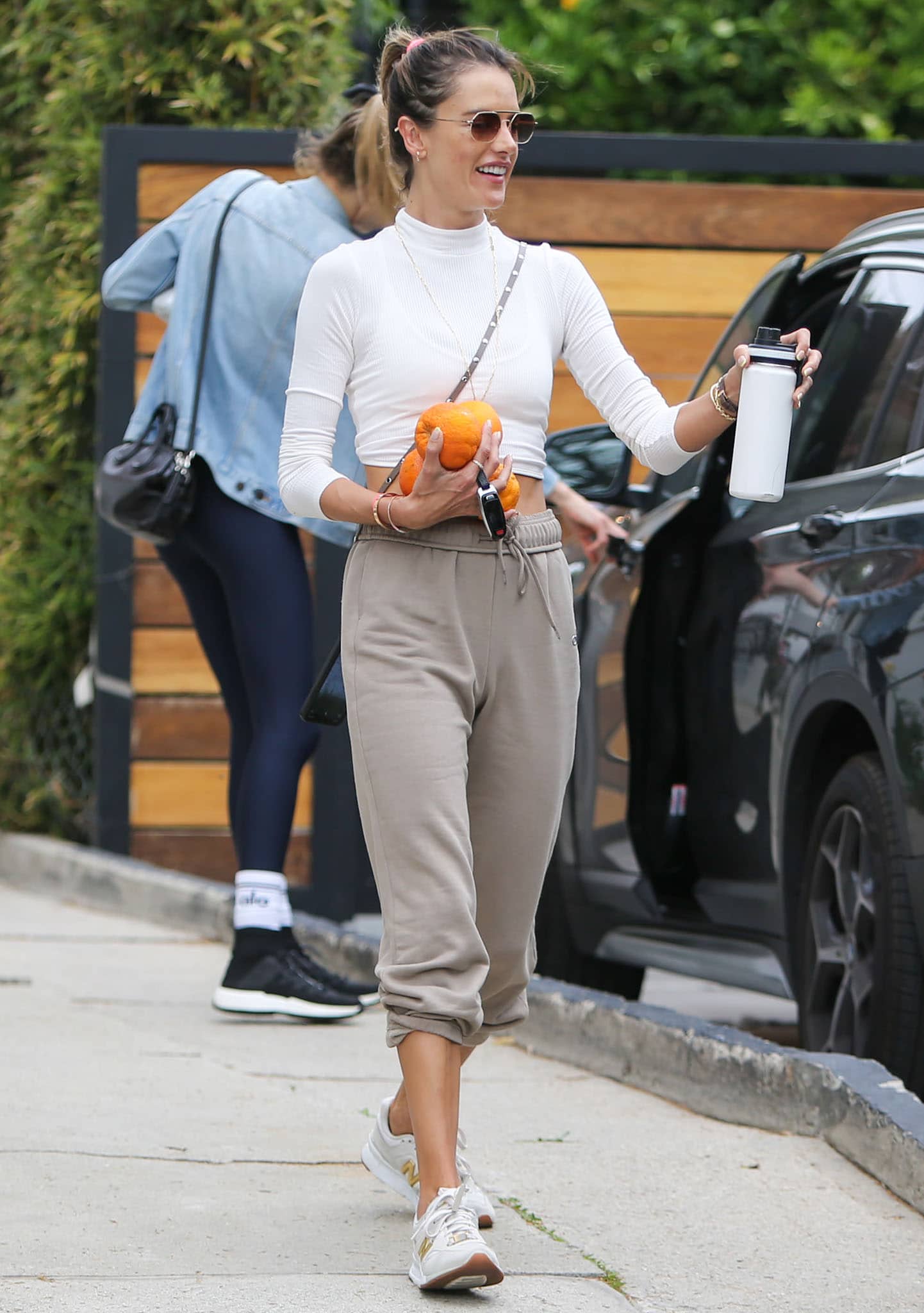 Following her #quarentALEchella birthday party, the mom-of-two was seen leaving a Pilates session in Los Angeles with three oranges in her hand.