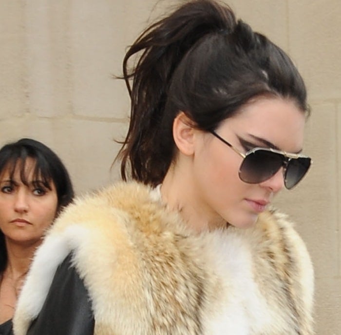 Kendall Jenner’s fur coat at the Chanel presentation during Paris Fashion Week on March 10, 2015